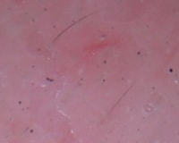 要点 | ダーモスコープで皮膚表面を拡大してみると、細かい粒がたくさん付着しています。皮膚にめり込んでいるので、水で軽く洗ったくらいでは落ちません。 麻酔クリーム塗布後、生理食塩水を流しながら、ブラッシングしたあと、拡大してみると、付着物はほぼ除去できています。切り傷は創縁切除後に真皮縫合で閉鎖しました。 処置3日後には上皮化しています。異物が付着していないと、治りがすごく早いことにしばしば驚かされます。 やや深かった部分は炎症後色素沈着が発生しています。UVケアと保湿をしっかり行い、徐々に改善しました。 |